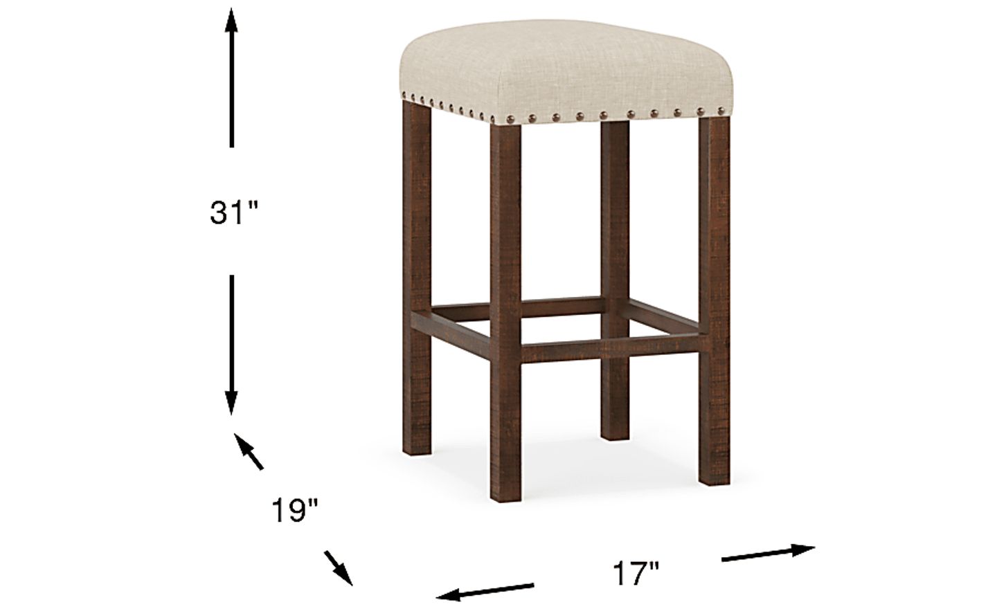 An excellent addition to its matching bar, the Westover Hills stool makes a statement in your home. Stylish ay any angle, neutral upholstery is accented by nailhead trim. The legs are crafted from solid pine wood in a brown finish, making it an excellent example of contemporary-meets-rustic styling.