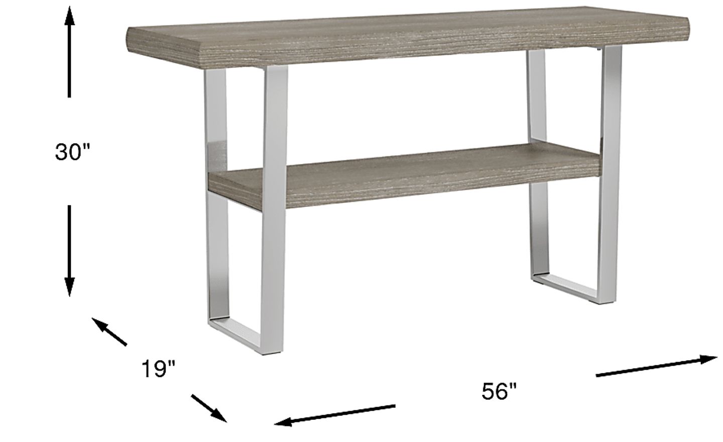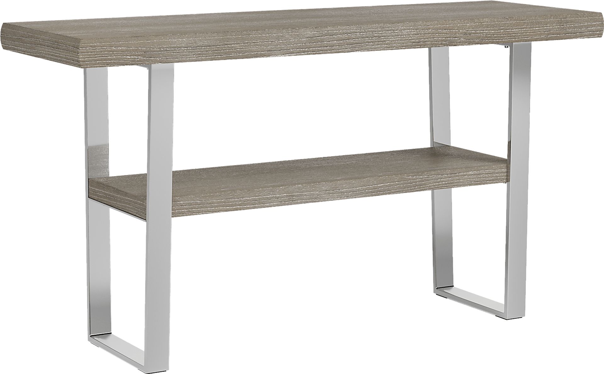 Contemporary and unassuming, the San Francisco sofa table is a must have for the person who prefers cutting-edge style. An 8-step finishing process gives the gray finished top a washed look allowing the full grain of the wood to be seen. A chrome finished base completes the look.