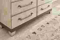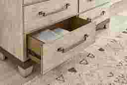 Great storage and transitional style make the City Mill dresser an excellent choice for your bedroom. Crafted from poplar wood solids with acacia veneers in a sandstone color, this piece comes in a weathered finish. Featuring six spacious drawers, the dresser has plenty of space for your clothing and other essentials. A concrete top completes the stylish appearance.