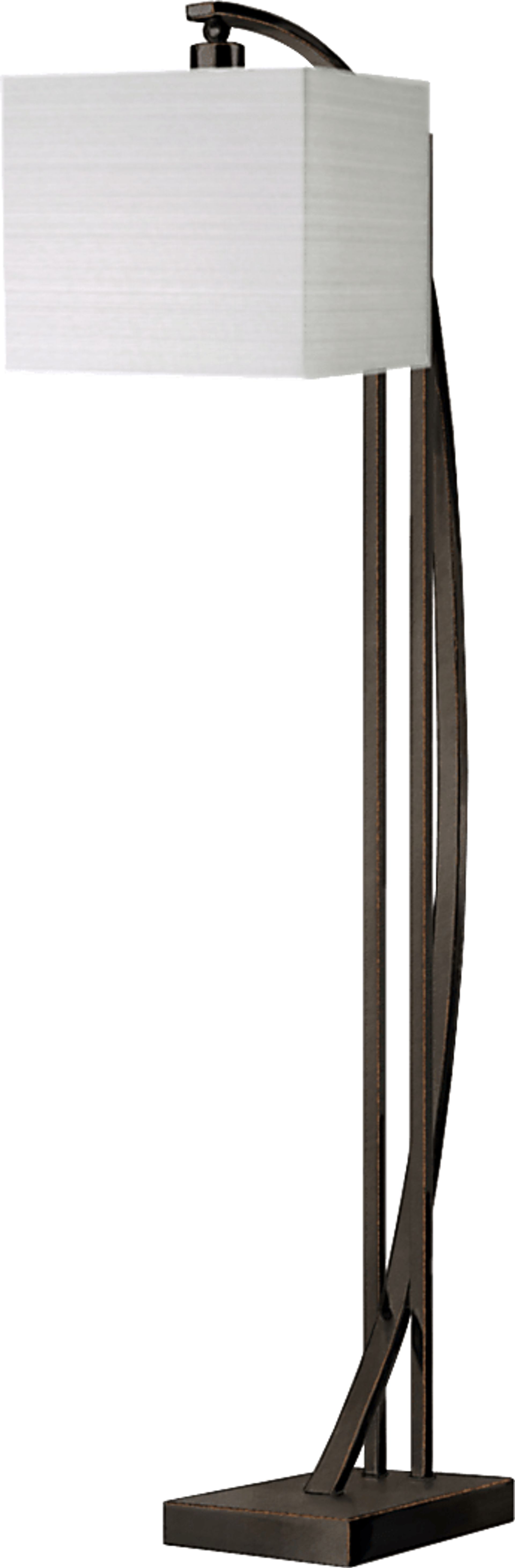 Like a graceful geometric drawing, the Rosalie Cove floor lamp will add a sleek yet powerful touch to your decor. Constructed entirely of slender and beautifully balanced parallel, silver-finished rods that curve at soft angles as they travel from the top to the base. The shade compliments the curves of the body, giving this lamp a unique look. Customer assembly is required.