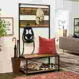 Keep your hallway tidy and organized with our industrial inspired design Civray bench. Perfect to store all of your outdoor attire; hats, coats, shoes, or umbrellas. Keep your family's items off the floor to dry and easy to use. Beautifully designed and durably constructed, it's a wonderful addition to any home. Customer Assembly Required.