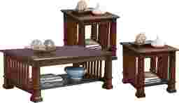Give your living space a handsome, sophisticated feel with the traditional styling of the Clairfield table set. Each sturdy table is crafted of pine solids and acacia veneers in a warm honey brown finish, with slat details throughout. This timeless table set's classic design will last a lifetime. Customer assembly required.
