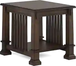 Simple sophistication. The Clairfield end table offers classic casual styling and quality craftsmanship that stands the test of time. Made from acacia veneers in a warm honey brown finish, this traditional end table features slat detailing on the sides for a stylish rustic touch. A lower shelf provides plenty of additional storage space.