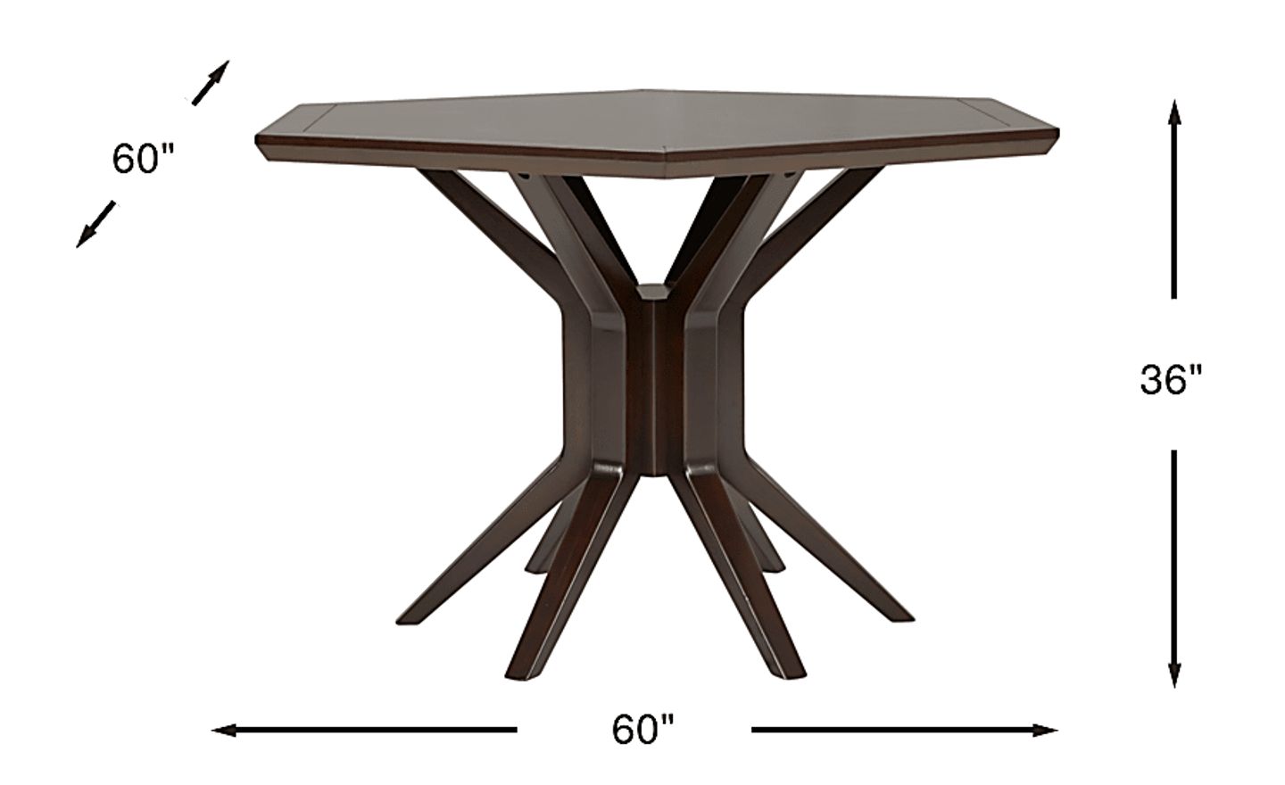 Bring a sleek, contemporary look to your dining space with the 60 x 60 inch hexagonal Clairmont Heights table. The stylish base and top are crafted from wood solids and Mindy veneers in a rich Merlot finish.
