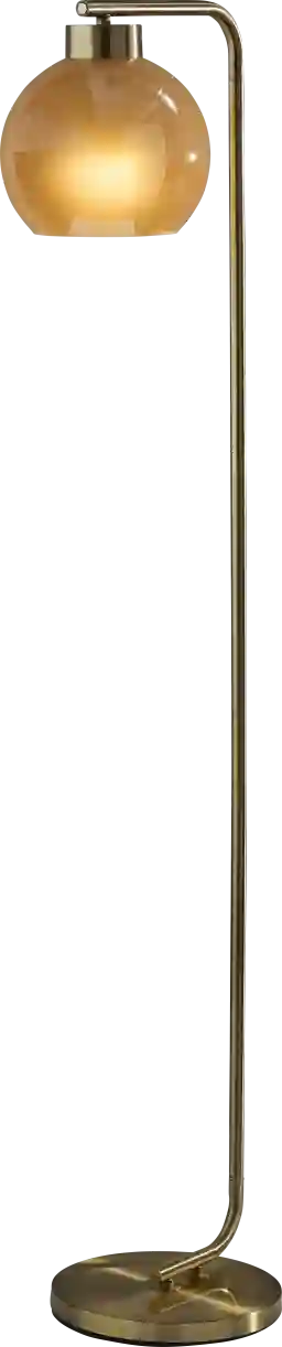 Introducing the Clarion Hollow Brass Floor Lamp, a fusion of vintage charm and modern sophistication. With its antique brass finish and globe-shaped amber glass shade, this lamp brings warmth and elegance to any space. The glossy exterior of the shade paired with its frosted interior creates a soft, inviting glow, perfect for creating ambiance in your living room, bedroom, or study. This floor lamp features an on/off touch switch conveniently located on the end of the pole, offering effortless control over your lighting experience. Partial assembly may be required.