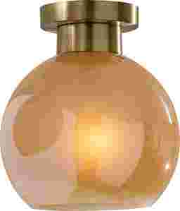 Introducing the Clarion Hollow Brass Flush Mount, a stunning lighting solution that combines vintage-inspired design with modern functionality. Finished in antique brass, this flush mount fixture exudes elegance and sophistication. Its 9-inch diameter globe-shaped amber glass shade boasts a glossy exterior and frosted interior, casting a warm and inviting glow when illuminated. Hardwire compatible, this fixture seamlessly integrates into your home's electrical system, making it a versatile and stylish addition to any room. Professional installation by an electrician is recommended.