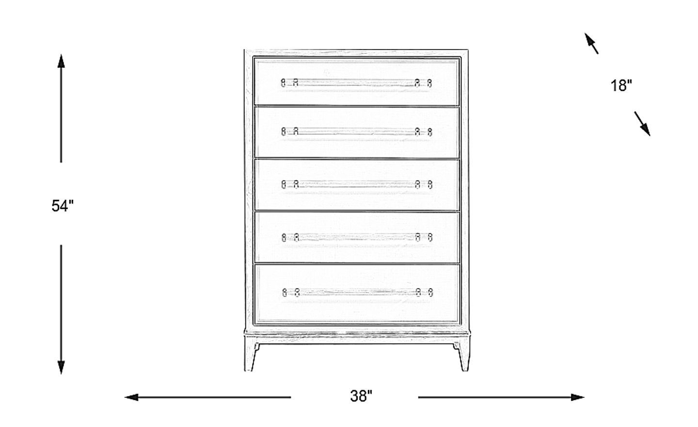 Get a little extra storage for your bedroom with the Clarissa chest. This piece features five spacious drawers vertically arranged to take up less wall space. Bar-style pulls with gold finish accents add a sleek touch to the beautiful white finish of this piece. Durable English dovetail joinery on the fronts and backs of the drawers are a testament to the quality construction of this collection.