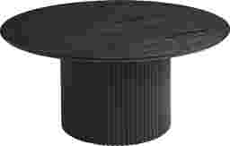 The Claudelands black cocktail table has a circular black wood design and base charms with black oak veneer. Column pedestal base with fluted vertical channeling finishes the eye-catching look. Customer assembly is required.