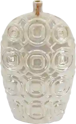 Combining modern geometric design with subtle elegance, the Cleftstone cream vase is accented with a relief design of overlapping circles and squares. Made with high quality ceramic, this decorative vase highlights the ornate textured details with a beautiful iridescent cream glaze.