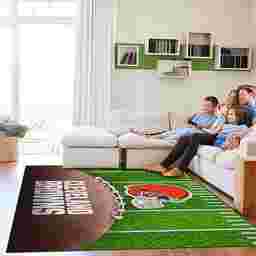 Add a touch of team spirit to your space with this vibrant 5 x 7 Cleveland Browns Football Field Rug. Ideal for any room where Browns Fans gather, this rug is not only eye-catching but also practical. Its durable construction makes it perfect for high-traffic areas, and the machine-washable design ensures it stays party, pet, and kid-friendly. Plus, the high-quality backing prevents any unwanted sliding. Show your love for the Browns with this stylish and functional rug.