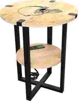 The Cleveland Browns laser etched round side table features a modern design that seamlessly blends with various decorative styles. It offers a convenient functionality for charging up to four devices at one time. The 2-Tier shelf also provides ample space to store your TV remote and other small items. Whether you are a Browns fan or simply appreciate well-crafted furniture, this side table is a versatile addition to any room. Customer assembly is required.