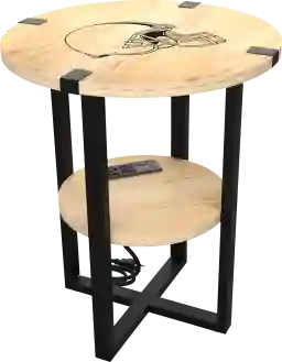 This side table is equipped with an integrated power hub that can charge up to four devices simultaneously. This built-in functionality is designed to streamline your living space by consolidating charging cables into one central, organized location, perfect for keeping phones and tablets powered during game day.