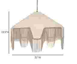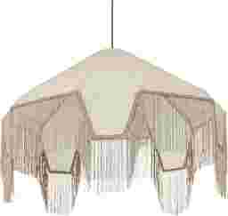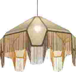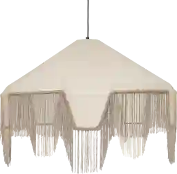 The Clio Beige Pendant feels like a dreamy piece of vintage romance-the kind of statement that turns a room into a story. Its wide, tent-like silhouette is wrapped in soft, natural fabric that glows warmly when lit, while the cascading fringe drapes down like a waterfall of texture, adding movement, elegance, and a touch of old-world glamour. The layered tassels dance with the light, creating a soft, enchanting ambiance that feels both nostalgic and effortlessly chic. It's bohemian, graceful, and undeniably magical. Let its poetic fringe and glowing serenity be the reason you bring it into your home. Professional installation by an electrician is recommended.