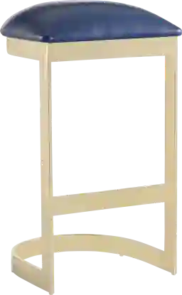 A study in balance. This Clostermen barstool is all understated luxury. Featuring a floating frame design with a curved base, its unique modern style creates an undeniable sense of lightness. Smooth faux leather upholstery is tailored into a sleek cushioned seat that rests easily on a polished metal base, enhancing its effortless feel. Its chic polished brass finish lends a subtly sumptuous touch that will elevate the atmosphere in any dining space.