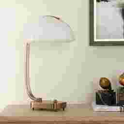 The Cloto Brass Lamp carries the quiet poetry of a modern relic-its soft, mushroom-shaped shade glowing like a captured moonbeam, balanced effortlessly atop a gracefully curved brass arm that feels both sculptural and serene. The warm metal base adds a touch of vintage elegance, grounding the piece with a timeless sophistication that instantly elevates any desk, nightstand, or reading nook. Its light is gentle but confident, casting a warm, inviting halo that makes every corner feel more thoughtful, more intimate, more beautifully designed. Let this luminous, artful treasure be the one you bring into your home. Partial assembly may be required.