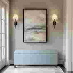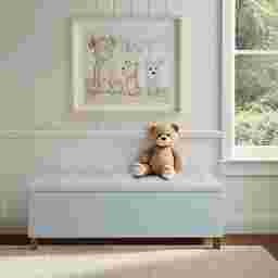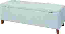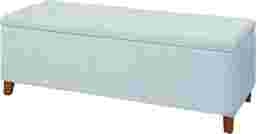 The Cloudway blue storage bench blends style and function with a tufted button top and a spacious interior compartment for concealed storage. Ideal for entryways, bedrooms, living rooms, and small spaces, it offers both seating and storage. Two spring mechanisms, one on each end, provide quiet, smooth, and controlled movement, preventing the lid from slamming and enhancing durability. Upholstered in soft, durable fabric, it features a padded lid, solid wood legs, and sturdy construction. Easy assembly, just attach the legs. Customer assembly is required.