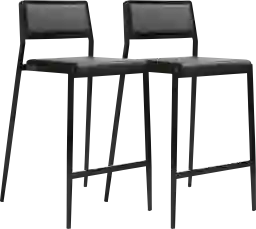Transform your kitchen with the striking Cloudywing I black counter height stool, set of 2. The stools are crafted with an anti-rust stainless steel frame, ensuring both durability and a timeless aesthetic. The supple vegan leather for easy cleaning encapsulates a sleek, minimalist-modern design that makes a bold, fresh statement in any space. Customer assembly is required.