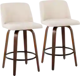 Comfort, modern simplicity, and classic lines define the appealing look of the Clyo stool set. The Clyo has a padded, upholstered seat that sits on a fixed height, with a Mid-Century inspired tapered leg base with a round footrest. Customer assembly is required.
