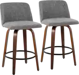 Comfort, modern simplicity, and classic lines define the appealing look of the Clyo stool set. The Clyo has a padded, upholstered seat that sits on a fixed height, with a Mid-Century inspired tapered leg base with a round footrest. Customer assembly is required.