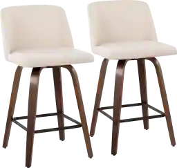 Comfort, modern simplicity, and classic lines define the appealing look of the Clyo stool set. The Clyo has a padded, upholstered seat that sits on a fixed height, with a Mid-Century inspired tapered leg base with a round footrest. Customer assembly is required.
