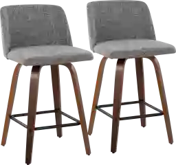 Comfort, modern simplicity, and classic lines define the appealing look of the Clyo stool set. The Clyo has a padded, upholstered seat that sits on a fixed height, with a Mid-Century inspired tapered leg base with a round footrest. Customer assembly is required.