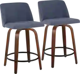 Comfort, modern simplicity, and classic lines define the appealing look of the Clyo IV fixed-height counter stool. A padded upholstered swivel seat sits on a fixed-height tapered leg base with a built-in footrest. Customer assembly is required.