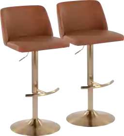 This set is a hallmark of modern simplicity, blending classic lines with contemporary finishes. The sophisticated gold-toned metal base provides a high-contrast accent to the warm camel-colored seats, making these stools a perfect fit for contemporary or "glam" inspired interiors. This versatile color palette also pairs well with various cabinetry finishes, from dark espresso to crisp white.