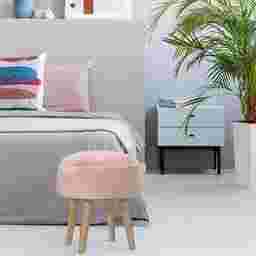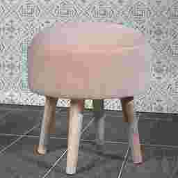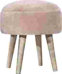 Create a statement to any room with a touch of color and style with this Coachlamp mid-mod styled ottoman stool. The velvet pink fabric is accented by tapered wood legs featuring a natural wood with distressed accenting. Perfect for extra seating, a place to prop your feet, or to use in your vanity area while getting ready for your day. Customer assembly is required.