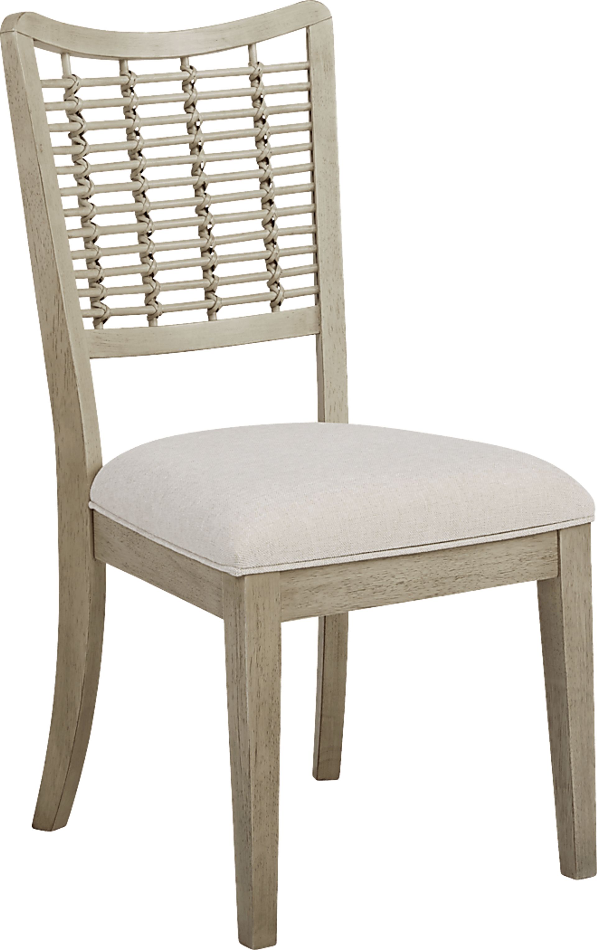 Featuring a charming rattan back and neutral sandy gray finish, the Coastline Drive dining chair delivers an appealing blend between transitional and coastal designs. It also boasts an amply padded seat and beautiful oak veneers to provide long lasting comfort and style.