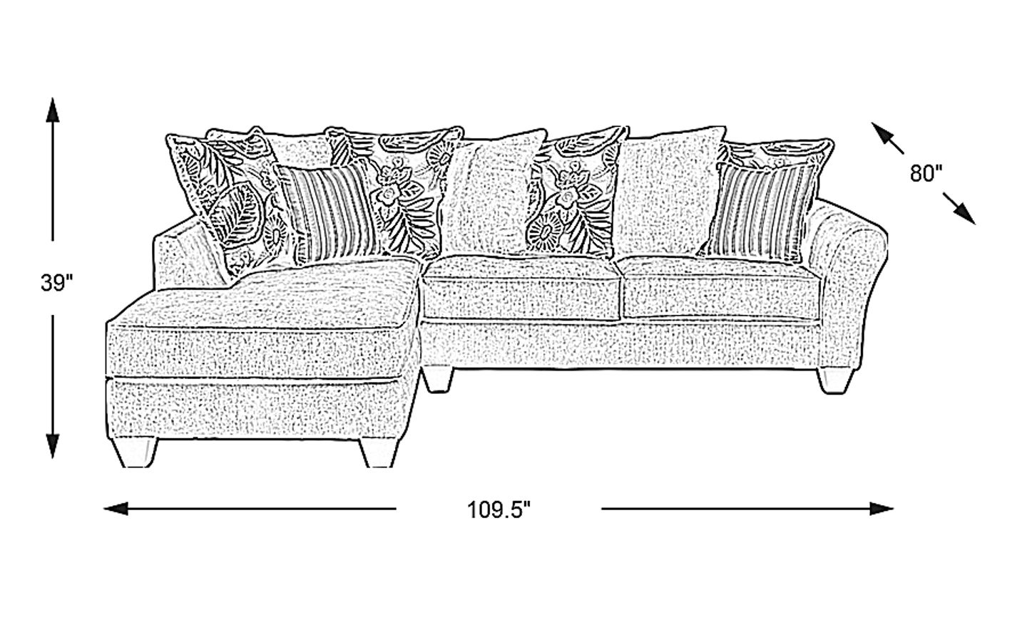 Create an inviting space with the Coastside sectional. Upholstered in soft textured fabric, the sectional has a casual coastal vibe thanks to its chambray blue color and decorative mix of striped, floral and solid toned scatter back pillows. A rolled arm and block legs lend a stylish silhouette while reversible seat cushions extend the life of the sectional. Upholstery: 100% Polyester.