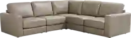 Confident forms and inviting comfort find one another on the Venice Modular, where intentional design details and unique mixed materials blend into a space with a perfect balance of comfort and contemporary grace. Each seat features cobblestone-colored top grain leather where the body touches, with luxurious accents like welted seams and decorative top stitching throughout. With wonderful efficiency, easy-to-use modular connectors make it simple to reconfigure this seating solution to fit your needs and taste anytime. Includes LAF chair, 2 armless chairs, wedge, and RAF chair. Upholstery: top grain leather where the body touches with polyurethane sides and back.