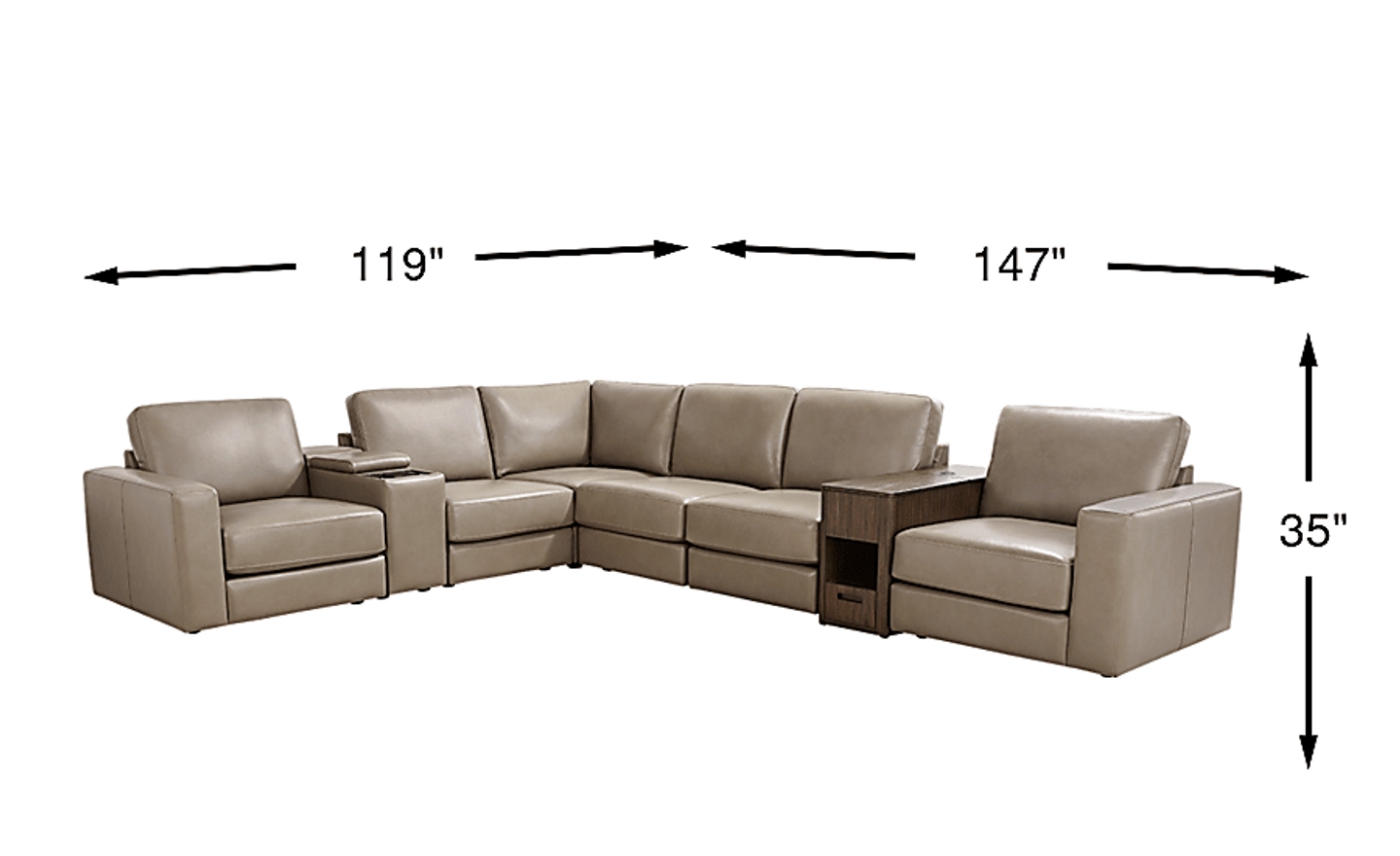 With dimensions of 119"W x 147"D x 35"H, this sectional is a substantial piece best suited for spacious, open-concept floor plans or dedicated media rooms. Because of its 147-inch depth, we recommend measuring your space carefully to ensure a minimum of 30 to 36 inches of walkway space around the unit to maintain a comfortable traffic flow. For those in urban apartments or smaller homes, the modular nature allows you to use fewer pieces if necessary to fit a more compact footprint.