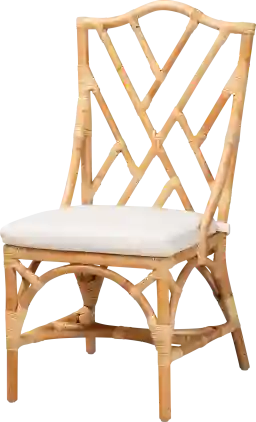 Natural rattan is an exceptionally resilient material known for its organic strength and flexibility. In this chair, the rattan is used to create a broad backrest that offers geometric appeal without sacrificing structural integrity. Because rattan is a natural fiber, it is well-suited for adding texture and "tropical design" flair while standing up to the wear and tear of daily dining.