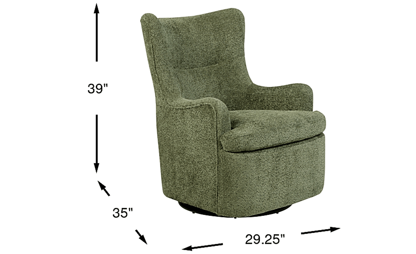 The perfect blend of trendy sophistication and luxurious comfort comes home with the Colburn swivel glider accent chair, putting a whole new spin on the design of relaxation. This modern chair features the tranquility of seamless gliding while a 360-degree swivel base allows you to be a part of every conversation in the room with ease. Its stylish flair arms and wing back offer an inviting embrace, while beautifully textured boucle brings character and coziness to every sitting. The olive hue accentuates your space with an elevated flair, making it a standout piece from any angle. Upholstery: 100% polyester.