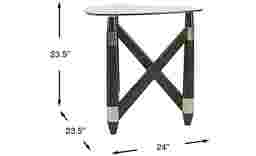 The design-savvy Colden end table is as much decorative as it is functional. The legs, crafted with poplar solids and birch veneers, are connected by unexpectedly angled stretchers that surprise and please the eyes. The uniquely shaped beveled glass top is tempered. Chic metal collars and glass supports complement the rich espresso finish. Customer assembly required.