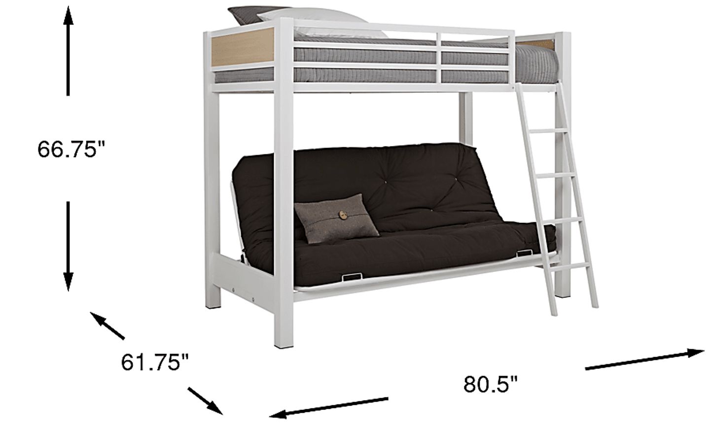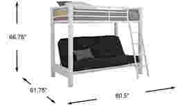 Showcasing timeless style infused with modern inspiration, the Colefax Avenue twin/futon loft bed combines distinctive lines with a sleek contemporary design. Made with a metal frame with a two-tone white and cream melamine finish, the twin-sized bed on top is flanked with sleek side rails. A sturdy ladder leads down to the futon a great place for friends to chill or a resting place for overnight guests (futon mattress sold separately). Mattresses and foundations (if required) sold separately.