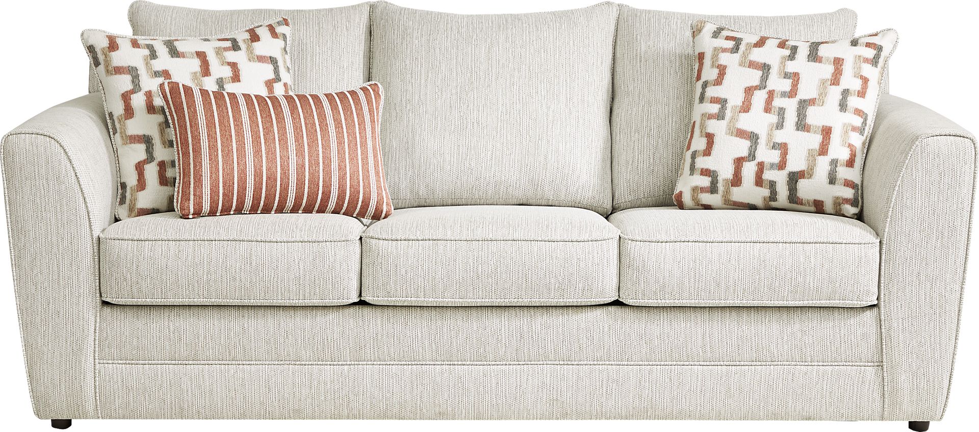 Refresh your home with the Colesby sofa. Clean and contemporary, this piece adds a modern cottage feel to any room. Upholstered in gray woven fabric, Colesby boasts double welted detailing and reversible seat cushions that ensure long-lasting style. Completing the look are orange and gray geometric-patterned toss pillows. Upholstery: 80% Polypropylene, 20% Polyester