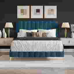 A new bed is a simple way to easily update your ensemble. The Coleta is a stylish bed an ideal choice if you want to create a glossy appearance. Upholstered with high quality soft-to-touch faux velvet fabric and graced with on-trend vertical channel-stitched creating timeless elegance that enhances your bedroom style. The thickly and comfortable foam-padded headboard cradles you to sleep as well as provides the ideal backrest position for you to watch a movie or read. Gold metal front footboard legs gives a sleek silhouette make this bed frame an extraordinary addition to a modern bedroom. Customer assembly is required.