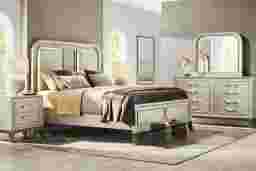 The serene glow of early morning light reflecting off city windows finds its form in the Colette collection's sculptural elegance and sophisticated ease. Contemporary in style, this bed is crafted with beautiful ash veneers in a soft silver finish that radiates understated glamour. The upholstered headboard is framed with metallic trim and backlit with integrated LED lighting, creating a soft halo effect that turns every evening into a moment of calm. The footboard features a sleek rectangular silhouette and two panels separated by elegant molding. Tall, angled legs in a dark gray finish add a graceful contrast that grounds the look for a poised final touch. Mattress and foundation (if required) sold separately. Bed shown is queen size.