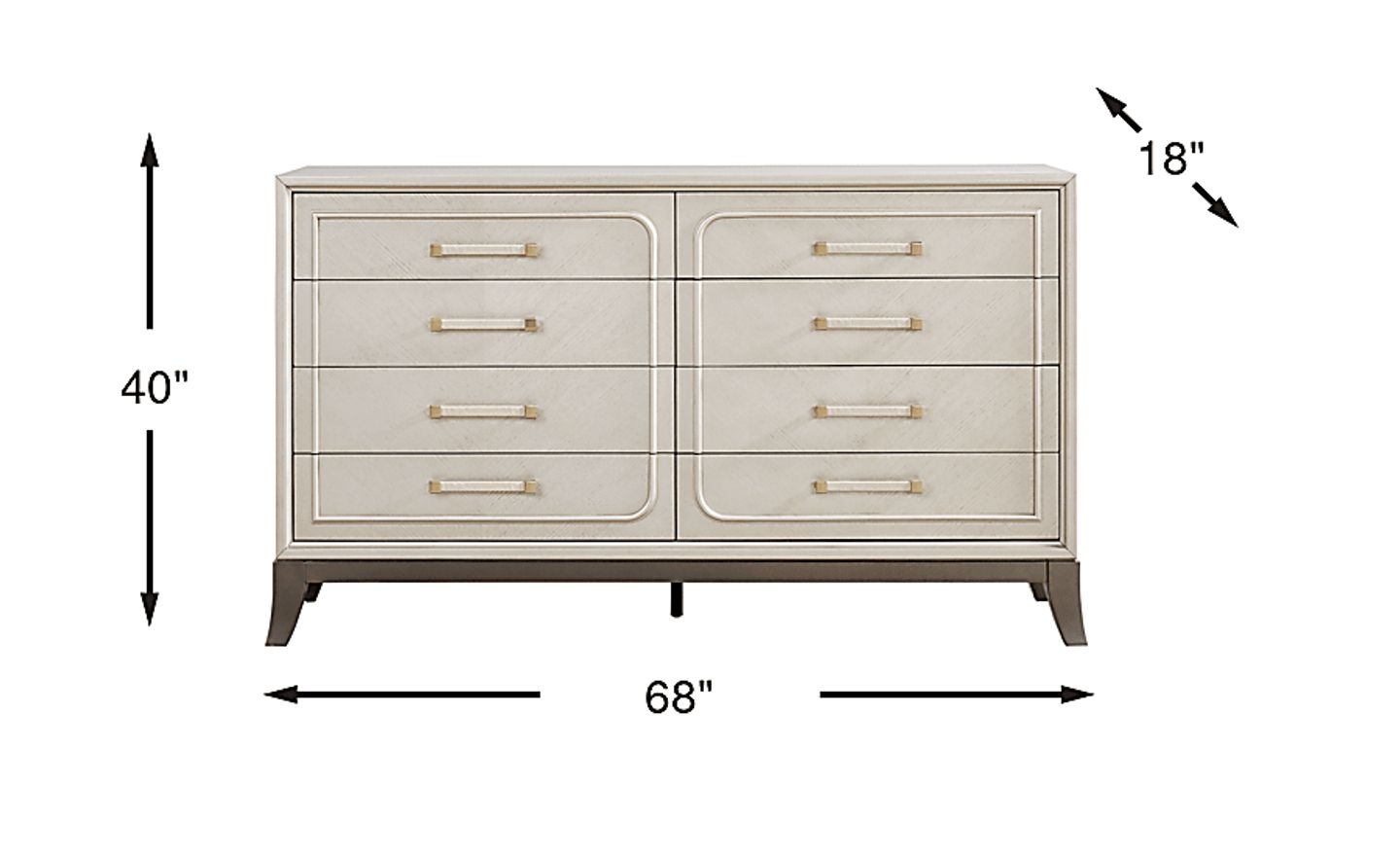 Measuring for a dresser requires balancing storage needs with floor space. This dresser features a standard horizontal silhouette with dimensions of 68"W x 18"D x 40"H. We recommend leaving at least 30 to 36 inches of clearance in front of the piece to allow the drawers to extend fully and provide comfortable walking space. Its relatively slim 18-inch depth makes it an excellent choice for maximizing storage without significantly obstructing pathways in standard-sized master bedrooms.