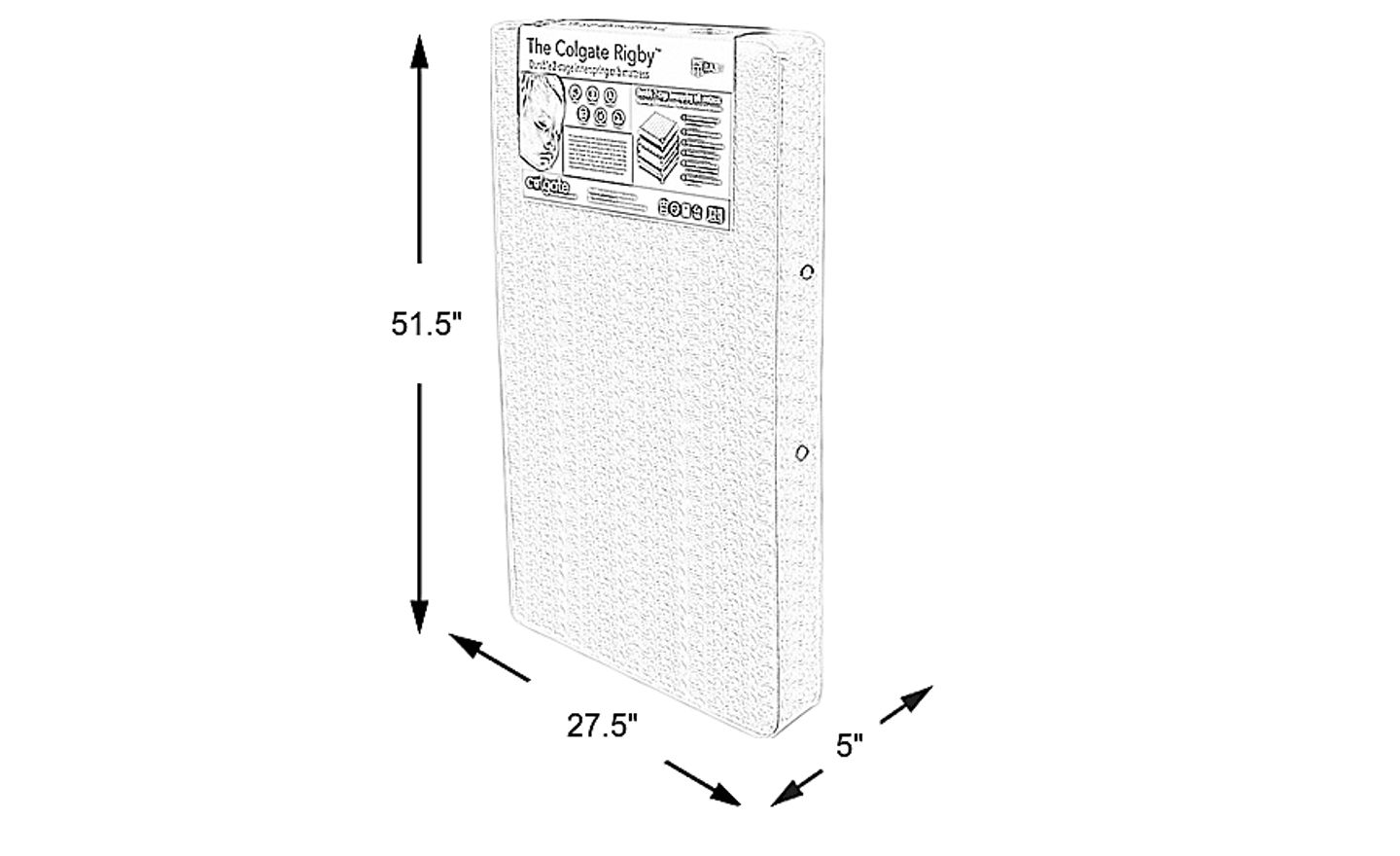 Crafted with the utmost care, the Colgate Rigby™ crib mattress offers an exceptionally safe design that transforms into a comfortable solution for toddlers. This adaptable 2-stage mattress has one side specially designed for infants, while the other is ready for their toddler days. Anti-inflammable and hypoallergenic, its triple-layer cover is both durable and safe. Cloth binding seams ensure its tear-resistant and waterproof qualities help it last through the years. At the core, an innerspring unit provides the support they need with extra thick steel coils and border rods for edge support. High-density firm foam delivers support for growing babies, while intertwined foam on the other side has a more comfortable feel for toddlers. Made from coconut husks, a renewable coir fiber insulator pad acts as a protective barrier between the innerspring unit and foam comfort layers. Beautiful embroidered detailing gives this crib mattress an elegant appearance worthy of your little one.