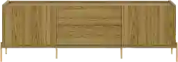 If you are searching for a modern tv stand with a touch of glam chicness, look no further. The Colletta I brown console has it all, from clever sleek storage to gorgeous gold details, so your entertainment space will wow. The side flip-down doors and full extension drawers are perfect for tucking away cables and Wi-Fi consoles. This console has beautifully gold brushed accents and legs that give an eye-catching elegance that completes any living room or bedroom. Customer assembly is required.