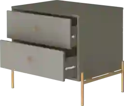 Give your bedroom or living room a boost of modern and glam style with the gorgeous Colletta II gray nightstand. The smooth tabletop provides the perfect platform for framed photos and displaying decor, or daily beauty routine needs. Two rounded gold knob accented full extension drawers allow extra space for versatile and practical use. Completed with gold brushed steel legs, this nightstand is the perfect piece to complete your unique and chic space. Customer assembly is required.