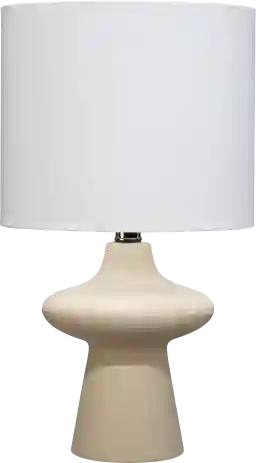 To maintain the "sandy" texture and finish of the ceramic base, we recommend occasional dusting with a soft, dry cloth; avoid abrasive cleaners that could mar the natural finish. For the fabric shade, a lint roller or a vacuum with a soft brush attachment is the most effective way to remove dust and keep the white material looking bright and fresh.