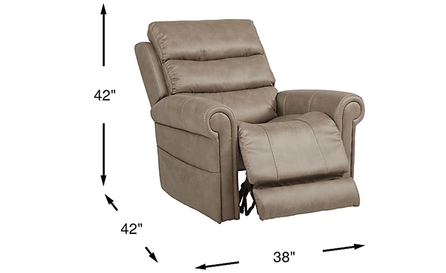 Elegant style and maximum relaxation are at your fingertips with the Colson Street power recliner. Lay flat at the touch of a button thanks to the power reclining feature while enjoying the attractive look-of-leather upholstery in a mushroom color. A storage pocket on the side of the roll arms keeps remotes and magazines close at hand. The lift feature helps you get up with ease when you're finished enjoying this amazing chair. 100% Polyester