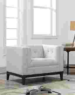 Inspired by classic mid-century design, the Colten beige accent chair is handmade by skilled furniture craftsmen. Supported with a kiln dried solid wood frame and antique brown ash wood trim and legs, this chair is built to last. The Colten chair will add immediate style and comfort to any room. Assembly required.
