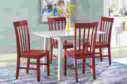 Concord White 5 Pc Drop Leaf Dining Room With Red Slat Back Chairs