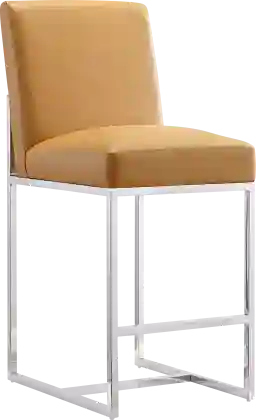 Carefully calibrated. Ultra-fresh and contemporary, the Congreve camel counter height stool boasts of perfection. All polished chrome and textured sheen faux leather, it's precise angles and open geometric frame are utterly modern and chic. The overall effect expresses a powerful sense of balance that will revitalize the look of any dining space.
