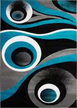 Draw out the dark and cool colors of your interior decor with the unique Connley rug. This rug features a swirls pattern in shades of turquoise, gray and white. This rug is machine woven with 100% polyprolene.