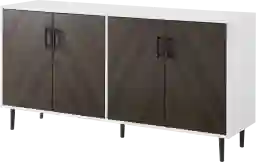 The perfect functional display piece, this bookmatch styled Consaul buffet is the piece you didn't know you needed. Comprised of mixed materials of silver hardware and durable laminate doors for a two-toned finish with adjustable rubber feet, the possibilities are endless. Whether placed in your unique kitchen as a traditional buffet or your living room for additional storage, this piece will feel both new and familiar with its mid century modern appeal. Customer assembly is required.
